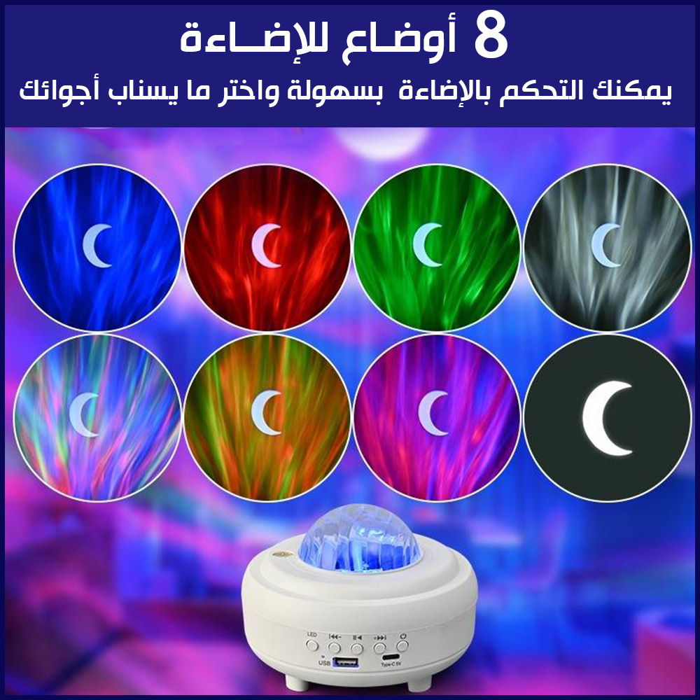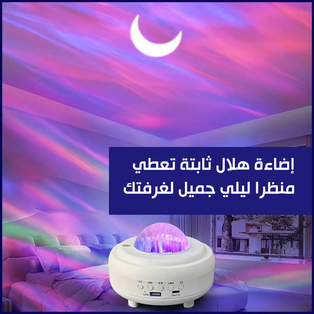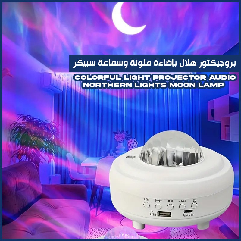 بروجيكتر هلال بإضاءة ملونة مع سماعة سبيكر Colorful Light Projector Audio Northen Lights Moon Lamp